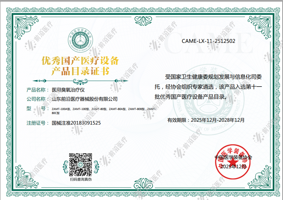 祝賀前沿醫(yī)療醫(yī)用臭氧治療儀入選《第十一批優(yōu)秀國(guó)產(chǎn)醫(yī)療設(shè)備產(chǎn)品目錄》